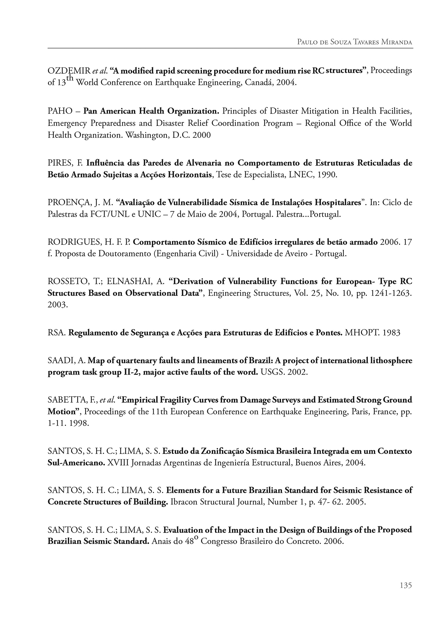 Avaliação da Vulnerabilidade Sísmica na Realidade Predial Brasileira.